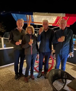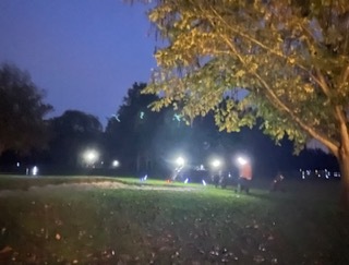 Op zaterdag 18 oktober werd de grand finale van het lustrumjaar gespeeld – een avond vol licht, lachen en een tikje chaos. De jeugd en oudere jongeren doken om 19:00 uur dapper het donker in en probeerden daarna hun bal op de fairway te houden… of in elk geval niet in de vijver en ander ontij. De verlichte ballen zorgden voor een sprookjesachtig schouwspel – of beter gezegd: een dans van dwaallichtjes over de baan. Het speelde wel een beetje gek, je zag de grond niet, de glooiing van de baan kon je niet goed inschatten, soms wist je niet waar je was. Maar hoe uitdagend en leuk werd daardoor het spel! Echt weer innovatief!